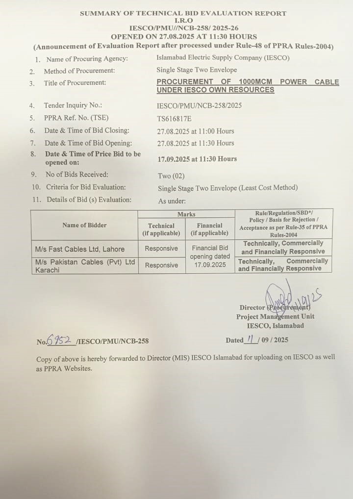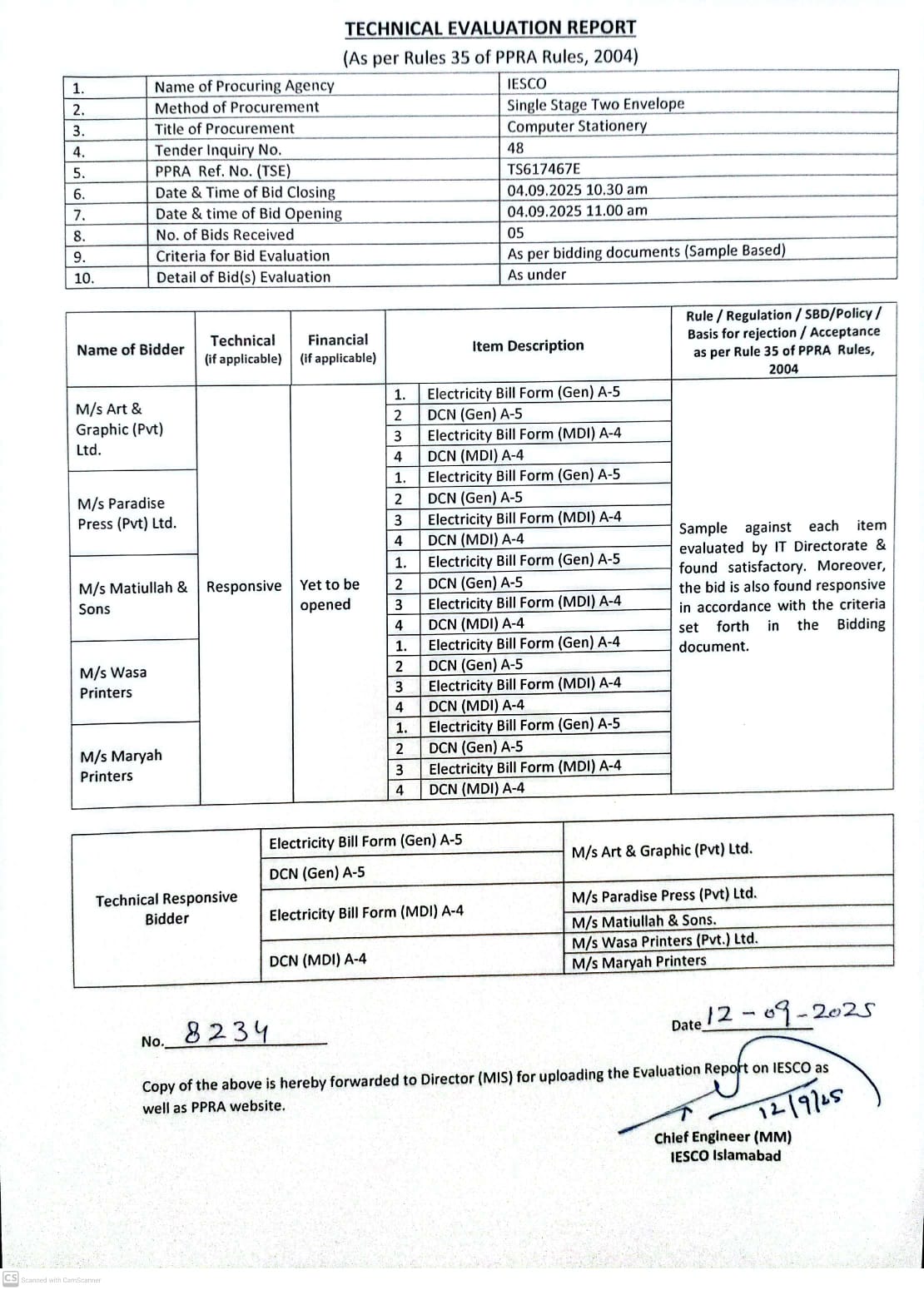 | CIVIL | CORRIGENDUM : IESCO CIVIL Invitation for Bids (IFB) Tender Notice No. NCB-01 to NCB-08 | 18 Aug, 2025 | 11:30 AM | |