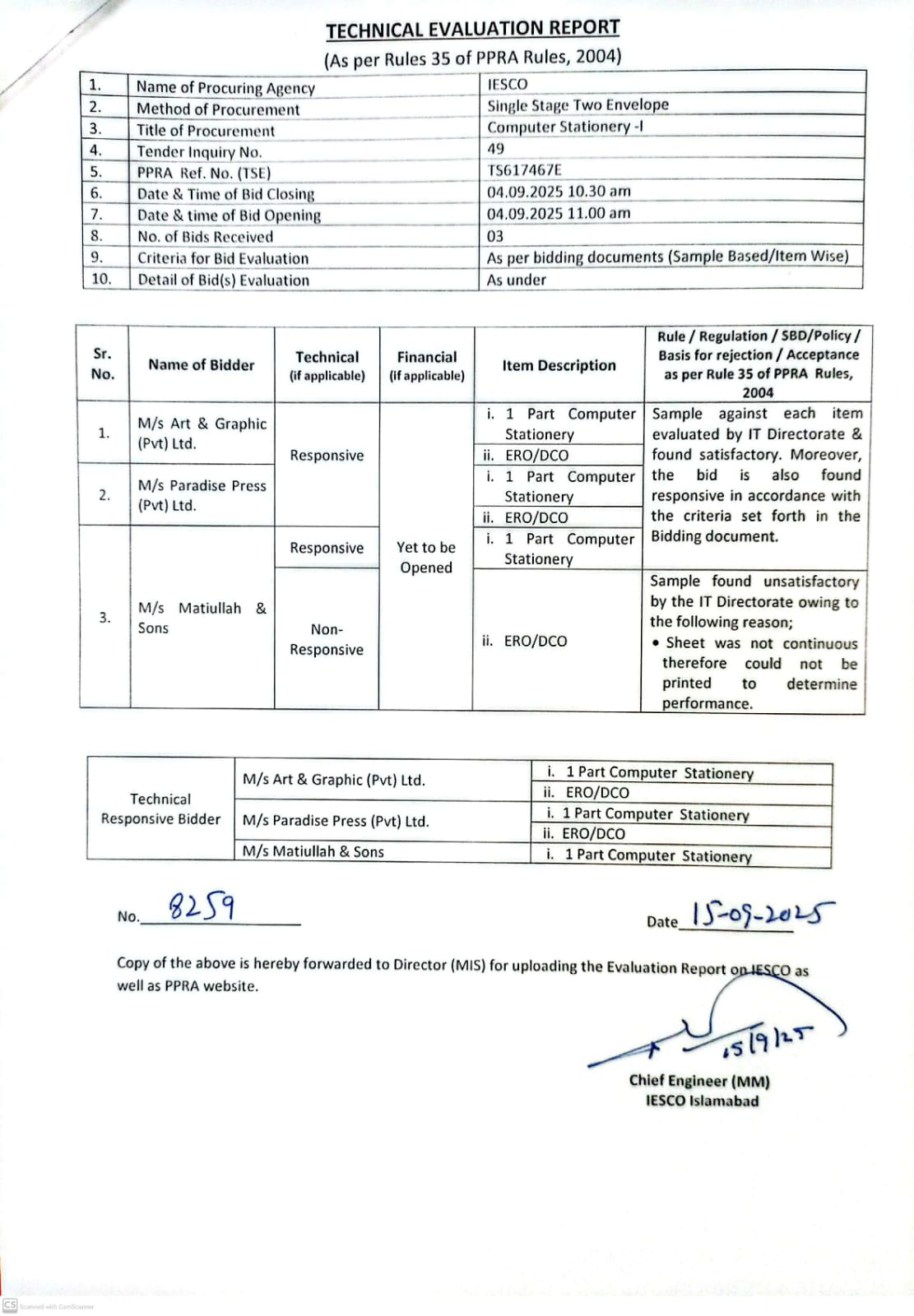 | FD | Corrigendum: IESCO Finance Directorate Request For Proposal (RFP) | 28 Jul, 2025 | 11:30 AM | |